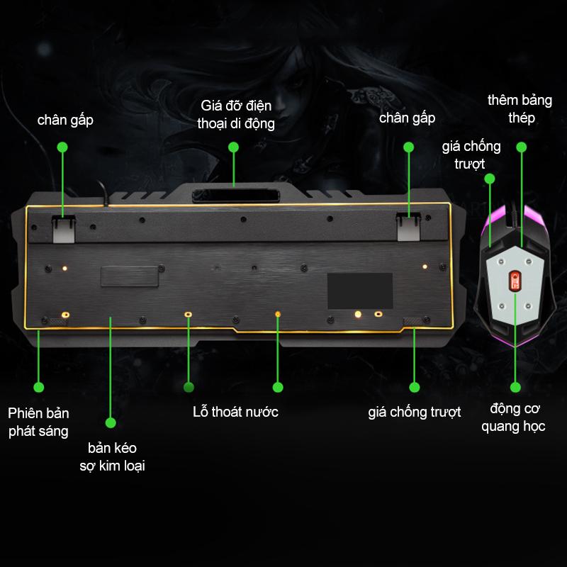 Bộ Bàn Phím Giả Cơ Và Chuột Game Dành Cho Game Thủ T21 Led đa Màu Có Dây, Chuyên Game, Có Khe Để Điện Thoại