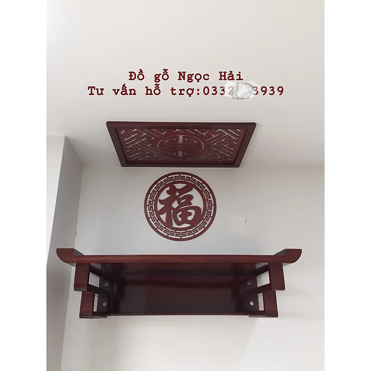 Bộ bàn thờ chung cư bằng gỗ sồi + ám khói + chữ phúc hay chữ bất kỳ