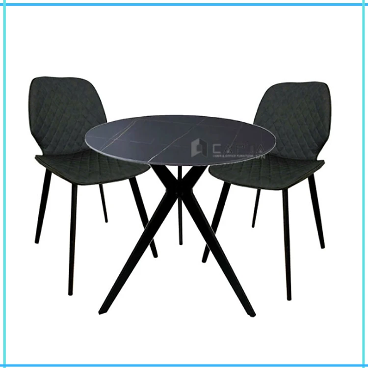 Bộ bàn tròn tiếp khách văn phòng nhỏ mặt đá phiến 2 ghế bọc Simili chân sắt nhập khẩu cao cấp SL TE1539-08E / LUX 37A-P- Small round table and 2 chairs