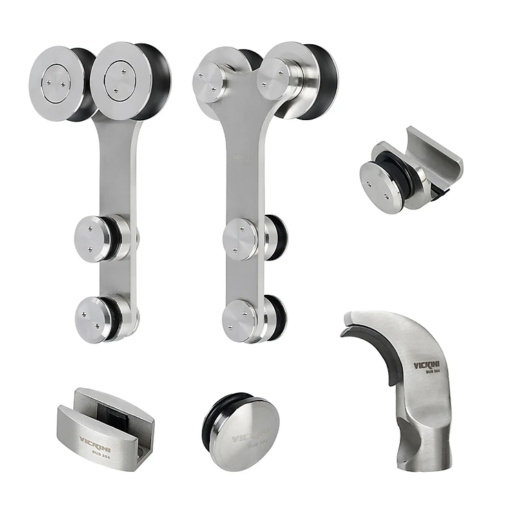 Bộ bánh xe kẹp kính VICKINI 62004.001 SSS inox mờ