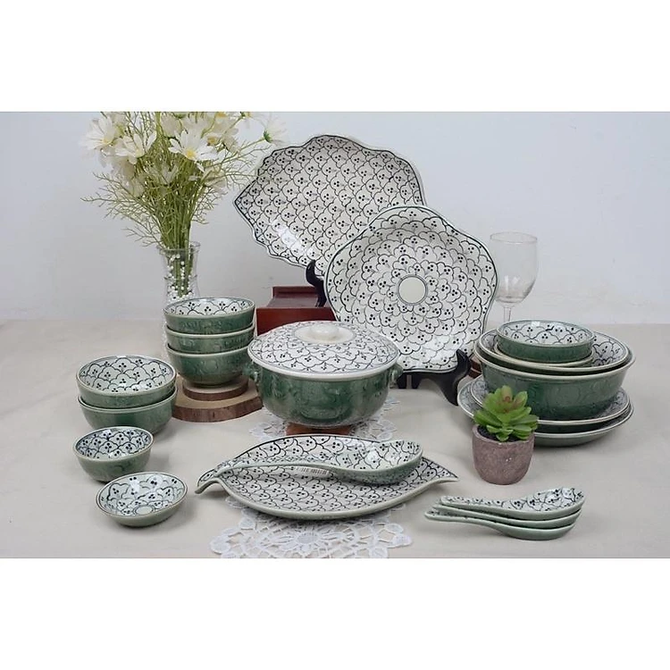Bộ bát đĩa 24 món mang phong cách Nhật Bản. Gốm sứ Bát Tràng.