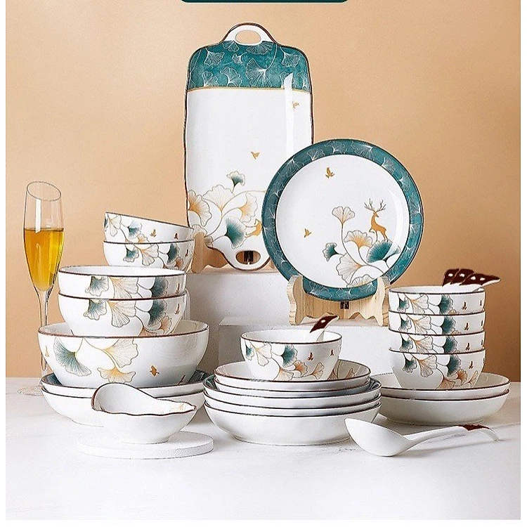 Bộ Bát Đĩa Thương Hiệu Gosu Hoạ Tiết Hoa Sen Xanh cao cấp