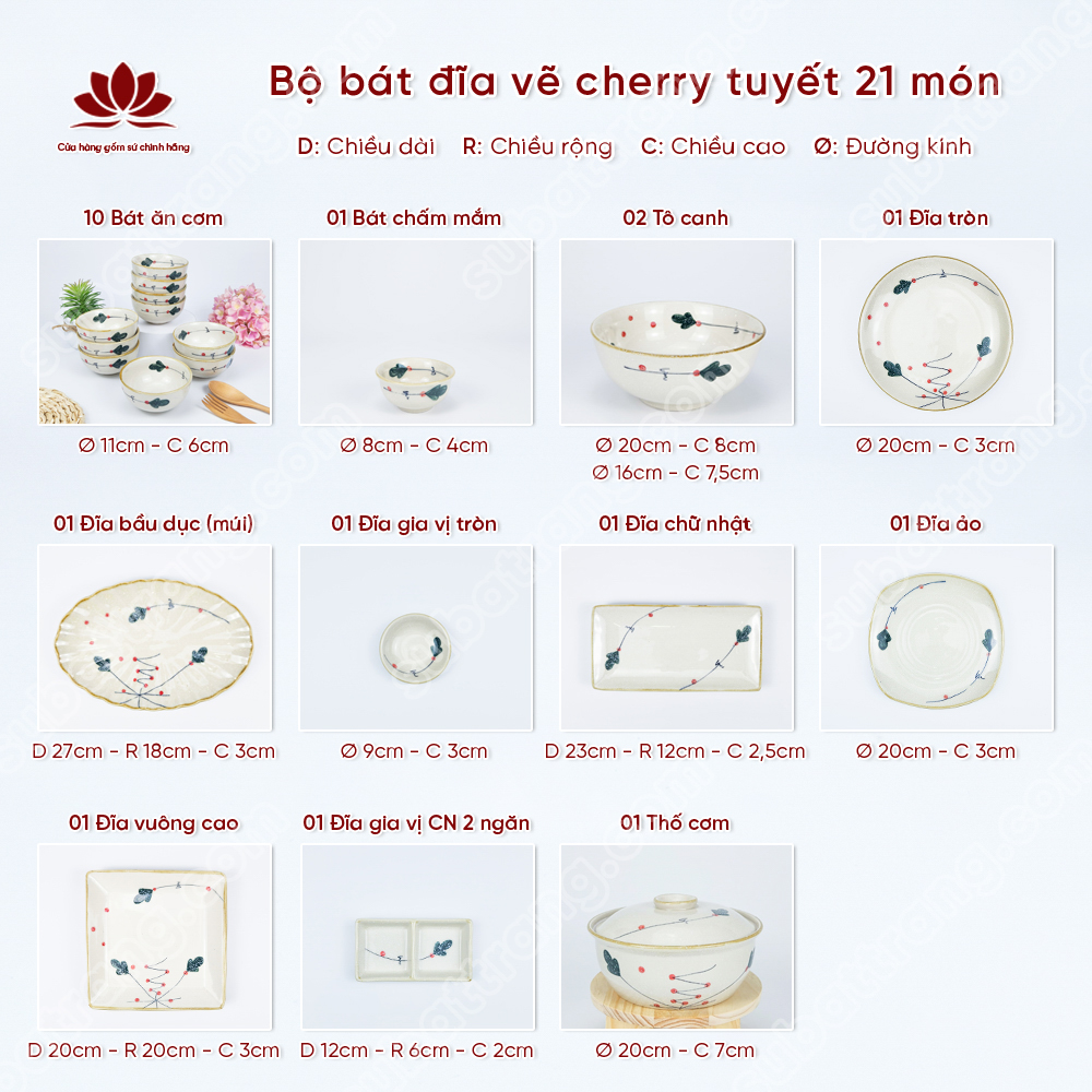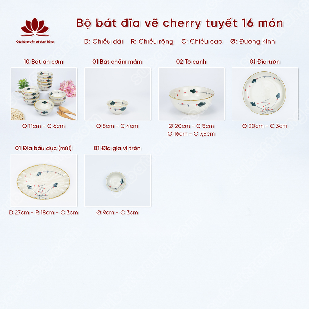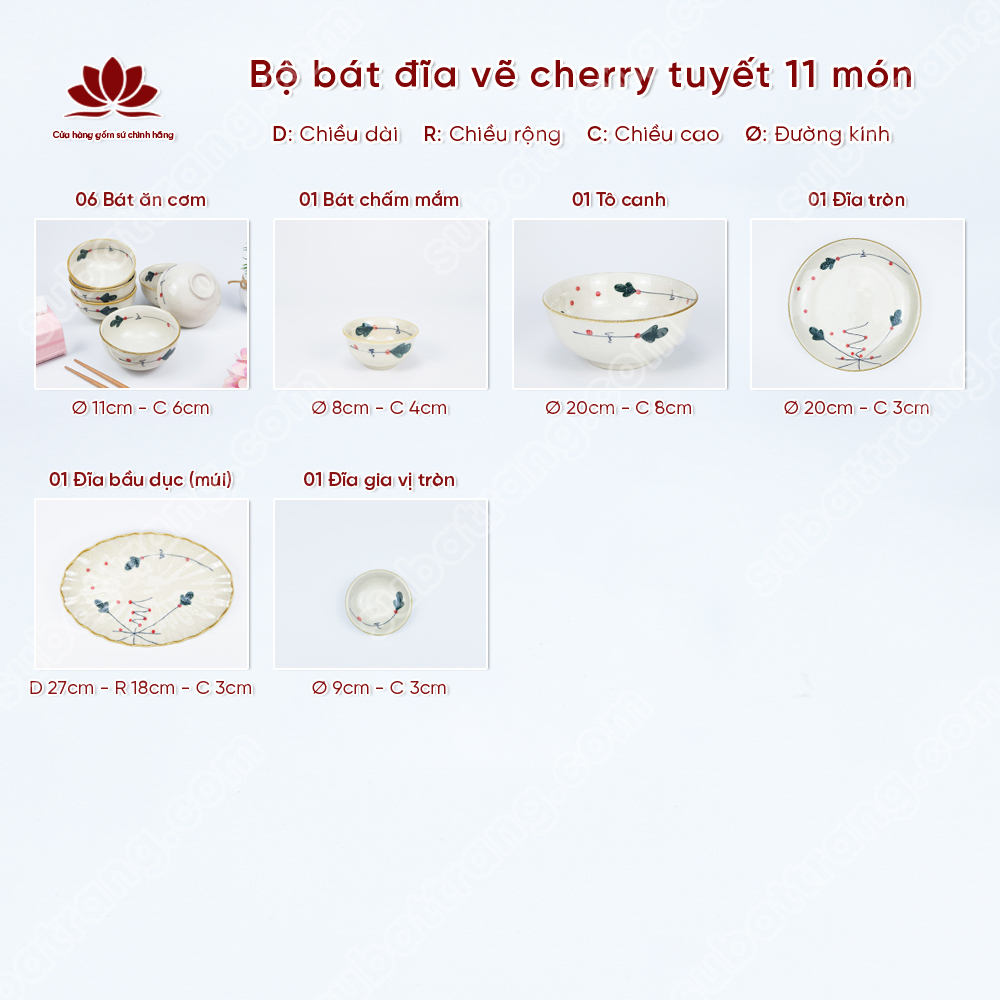 - Sản phẩm: Bộ bát đĩa cao cấp vẽ cherry tuyết