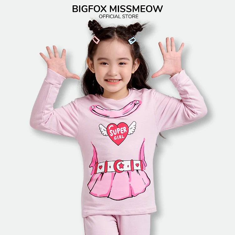 Bộ bé gái BIGFOX - MISS MEOW thu đông size đại, bộ dài tay cho bé hóa trang halloween in super girl 11 - 32 kg