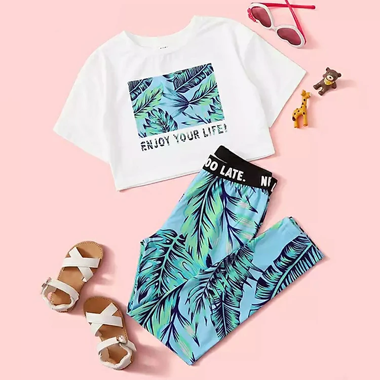 Thiết kế áo cổ tròn, in hình tạo điểm nhấn, cùng quần lửng, toát lên nét năng động khỏe khoắn cho bé.