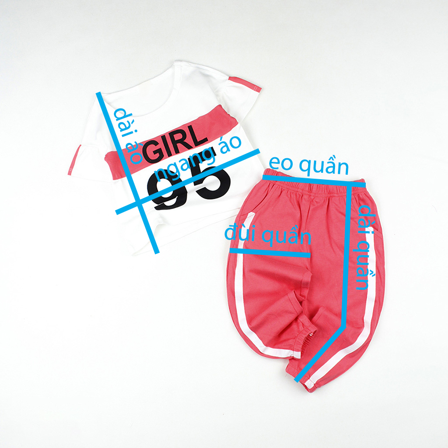 Bộ bé gái thun áo croptop in số kiểu dáng thể thao từ 14 đến 25 kg 04790-04785