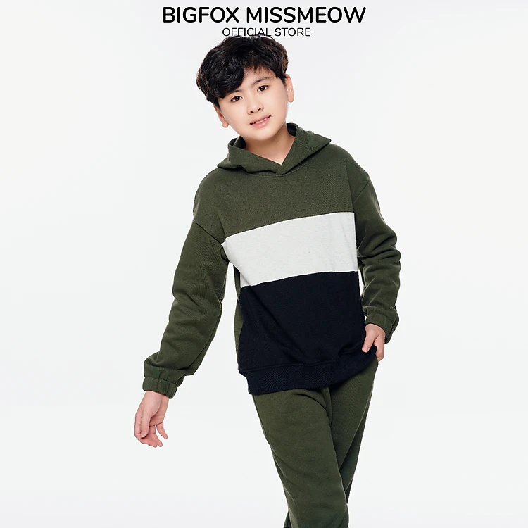 Bộ bé trai BIGFOX MISS MEOW mùa thu đông size đại, có mũ phối màu phom Hàn cỡ 9,12,15 tuổi 30kg 50kg 2001