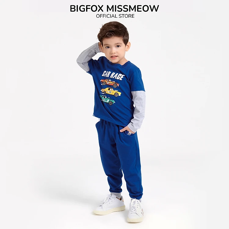 Bộ bé trai BIGFOX - MISS MEOW thu đông, bộ dài tay cho bé phong cách Âu Mỹ hình ô tô 10 - 26 kg