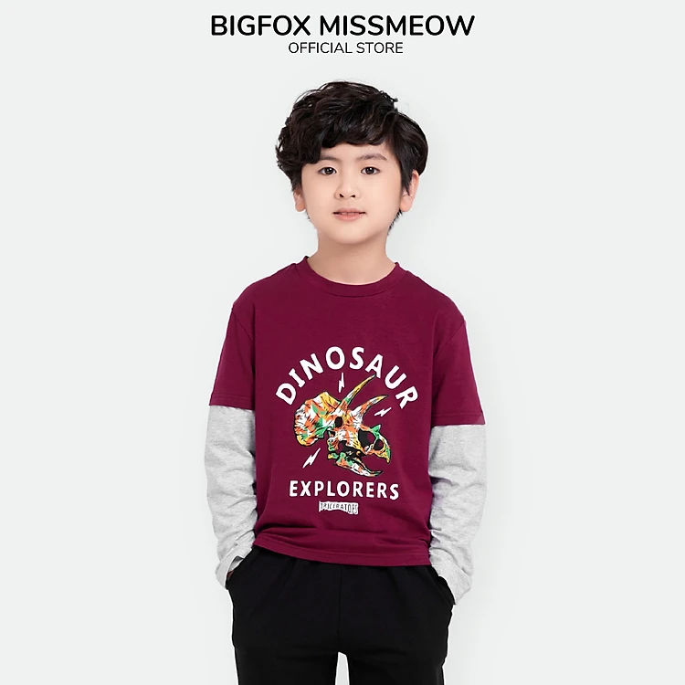 Bộ bé trai thu đông BIGFOX - MISS MEOW size đại, bộ dài tay cho bé hình in khủng long cỡ trẻ em 3-11 tuổi 11 - 37 kg