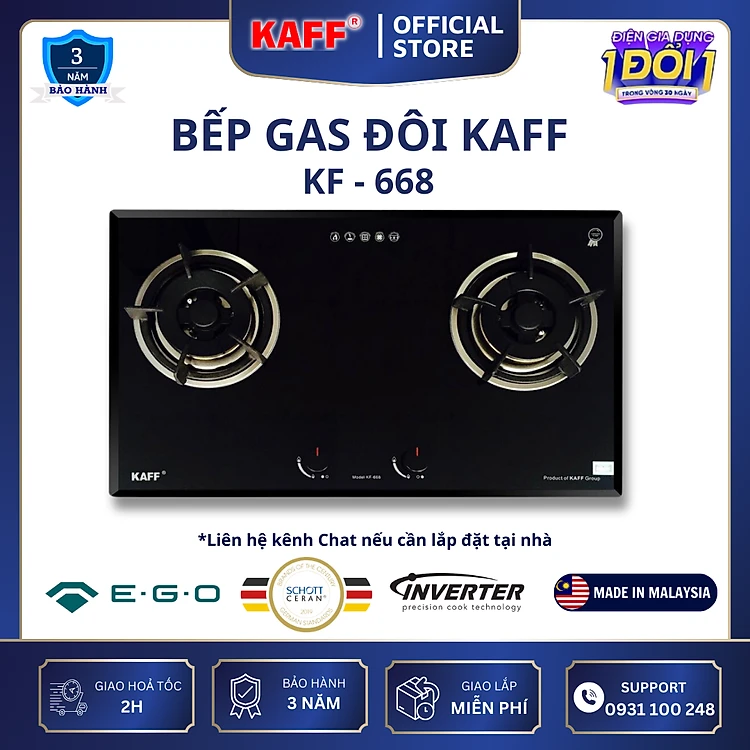 Bếp ga âm mặt kính KAFF KF-668 - Hàng chính hãng