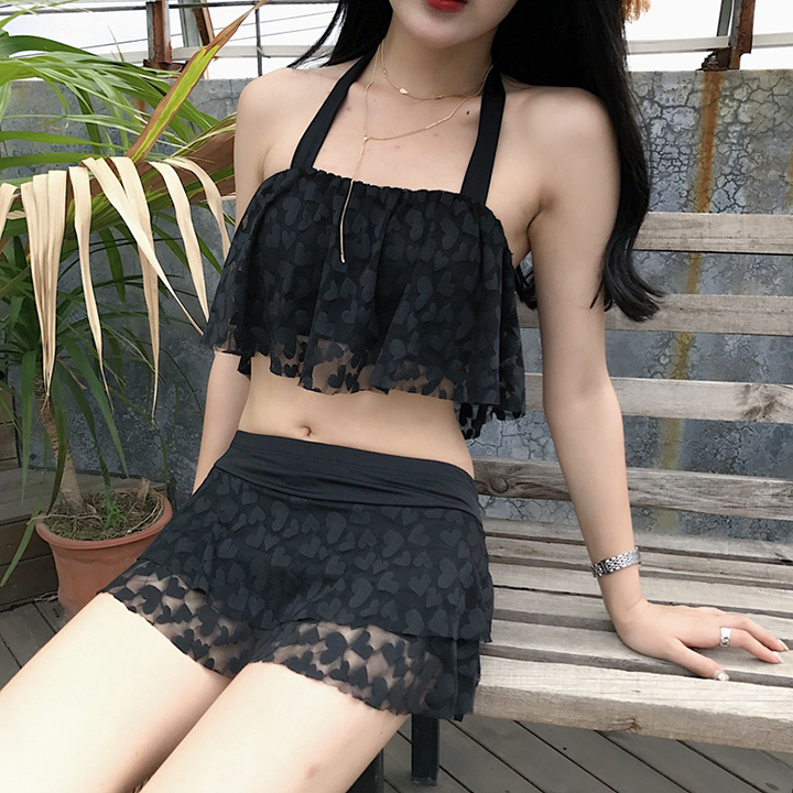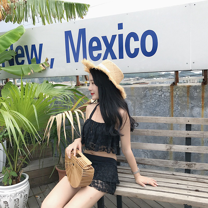 - Áo Yếm phối với chân váy lưng cao bên trong may thành quần đùi rất kín đáo nên các nàng đi học bơi hoặc còn ngại hở hang thì đây chính là lựa chọn tốt