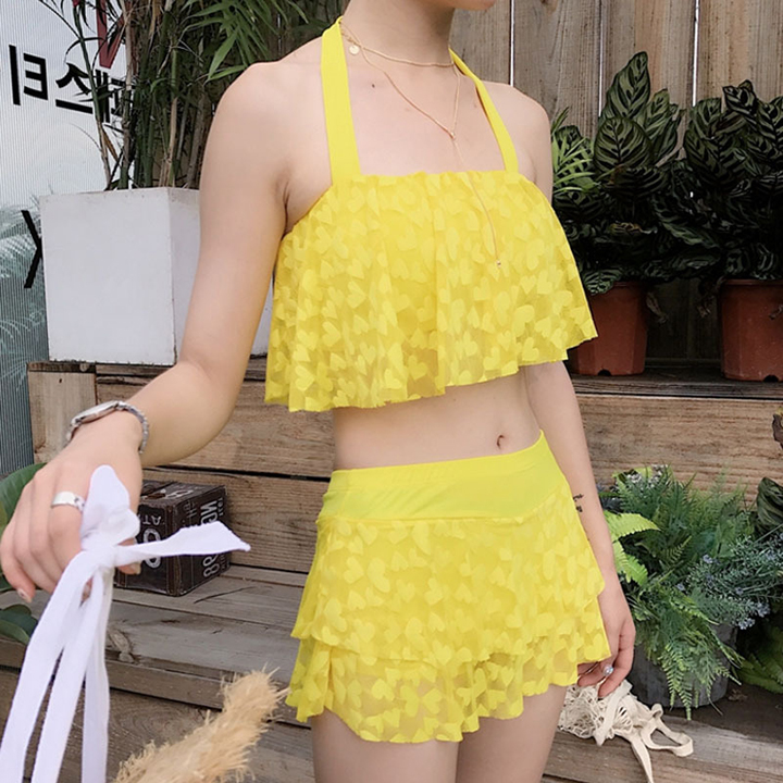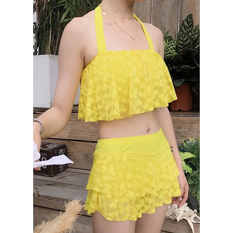 - Áo Yếm phối với chân váy lưng cao bên trong may thành quần đùi rất kín đáo nên các nàng đi học bơi hoặc còn ngại hở hang thì đây chính là lựa chọn tốt