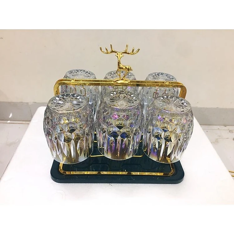 Bộ bình cốc kèm khay vương miện và giá úp hươu cao cấp