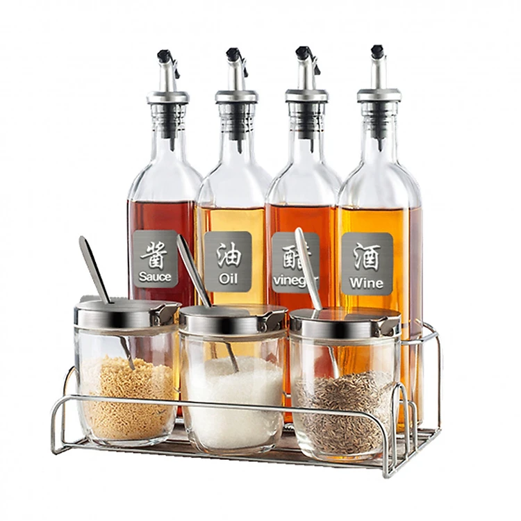 Bộ bình đựng dầu và gia vị bằng thuỷ tinh cao cấp kèm kệ inox xinh xắn này giúp bạn đựng được tất cả các loại gia vị thường dùng trong căn bếp của mình như muối, hạt nêm, đường, tiêu, bột ngọt...
