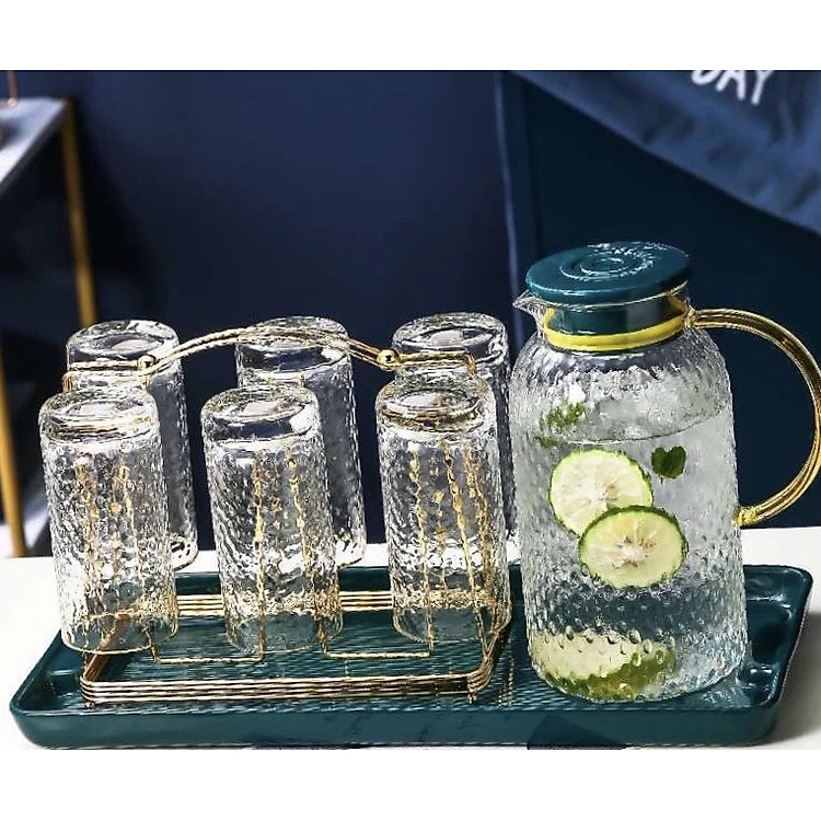 BỘ BÌNH ĐỰNG NƯỚC KALANDI KÈM 6 LY THỦY TINH DÁNG CAO , GIÁ TREO CỐC VÀ KHAY SỨ XANH CỔ VỊT - ANTH253