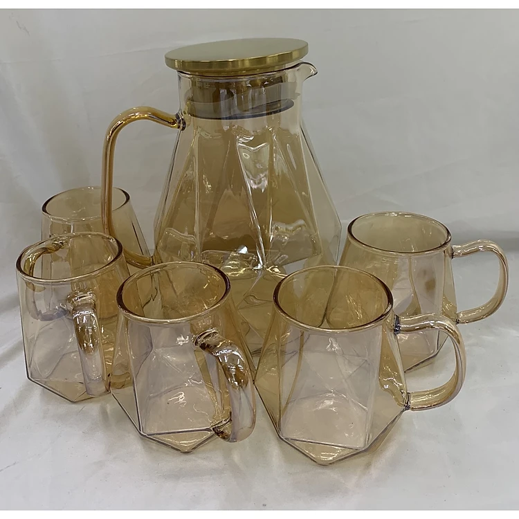 Bộ bình đựng nước thủy tinh kèm 6 ly màu vàng sang trọng - ANTH666