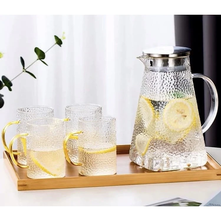 BỘ BÌNH ĐỰNG NƯỚC UỐNG THỦY TINH CHỊU NHIỆT CAO CẤP KÈM 6 LY ĐÁY CẠNH - ANTH580