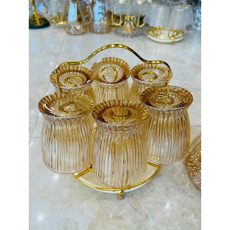 Bộ bình đựng nước uống thủy tinh kèm 6 cốc sọc tăm và giá úp cốc
