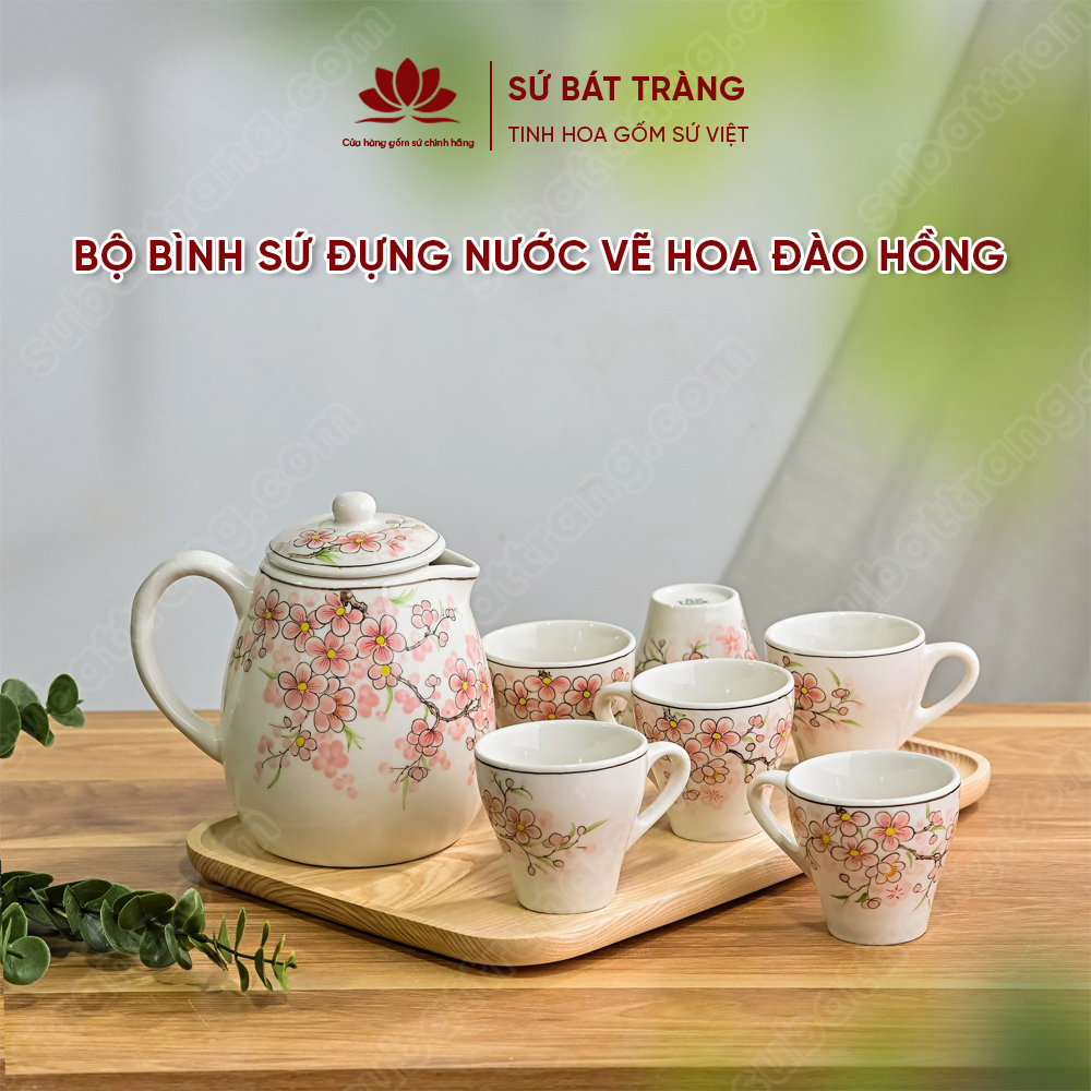 Chính vì vậy mà họa tiết hoa đào hồng khi được điểm tô lên sản phẩm bộ bình nước của Sàn gốm đã thu hút sự quan tâm của rất nhiều khách hàng.