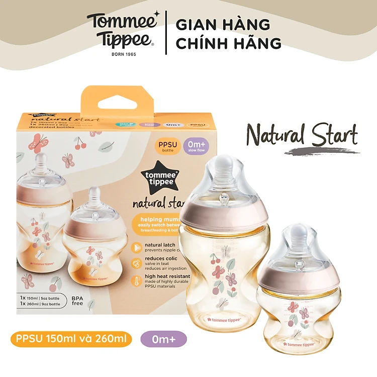 Bình Sữa PPSU Ty Siêu Mềm Tự Nhiên Tommee Tippee Natural Start (Bộ 1 Bình 260ml và 1 Bình 150ml)