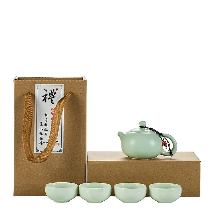 Bộ bình trà 4 tách có túi đựng (màu xanh)