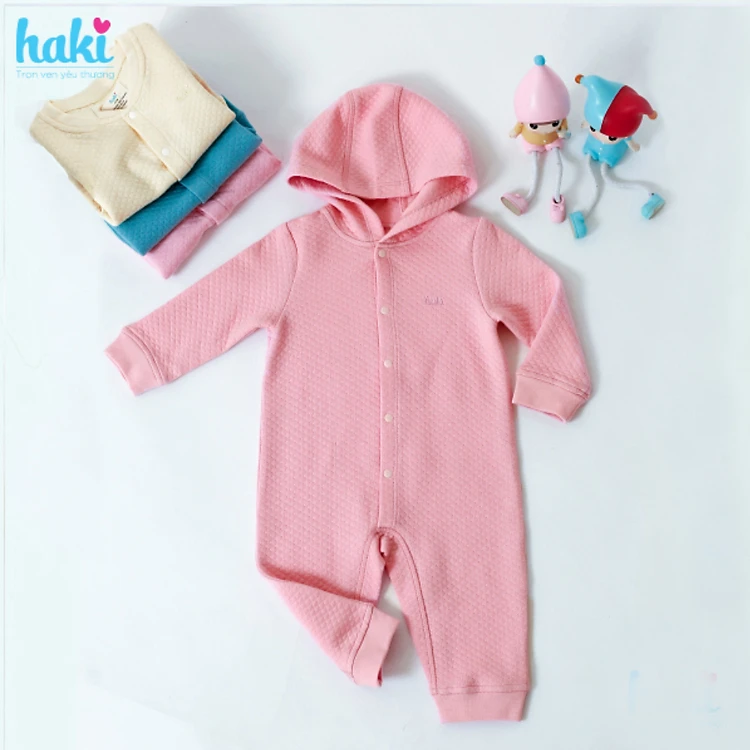 Bộ body sợi tre chần bông cho bé sơ sinh đến 1 tuổi HAKI BB015 (2.5-10kg) chất liệu cao cấp xuất khẩu Canada siêu mềm mịn, ấm áp, nhẹ, thoáng khí. Set áo liền quần thu đông có mũ (có video thật)