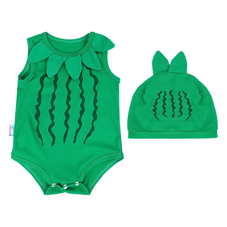 • Bộ Bodysuit Fruit Mihababy BDS02_K - Xanh Két có thiết kế áo liền quần vô cùng xinh xắn đáng yêu. Trên bộ quần áo là các họa tiết trái dưa hấu cùng màu xanh tươi tắn tạo cảm giác thích thú cho các bé khi mặc chúng.