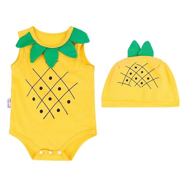 • Bộ Bodysuit Fruit Mihababy BDS02_V - Vàng có thiết kế áo liền quần vô cùng xinh xắn đáng yêu. Trên bộ quần áo là các họa tiết trái dứa cùng màu vàng bắt mắt, tạo cảm giác thích thú khi mặc chúng.