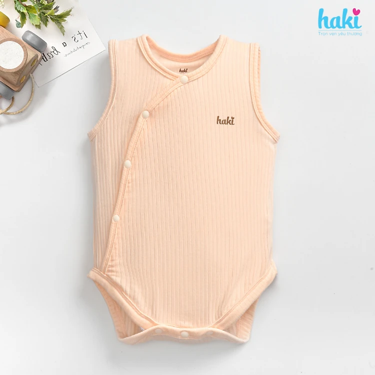 Bộ bodysuit sát nách, cài chéo vải gỗ sồi cao cấp BM009 set body cho bé trai bé gái chất liệu Modal hàng chính hãng HAKI