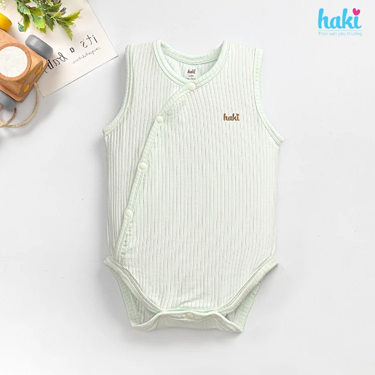 Bộ bodysuit sát nách, cài chéo vải gỗ sồi cao cấp BM009 set body cho bé trai bé gái chất liệu Modal hàng chính hãng HAKI