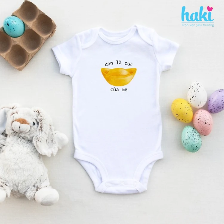Bộ bodysuits (body liền) cộc tay vai chồm mềm mại, họa tiết thanh long xinh yêu cho bé trai bé gái HAKI BC006