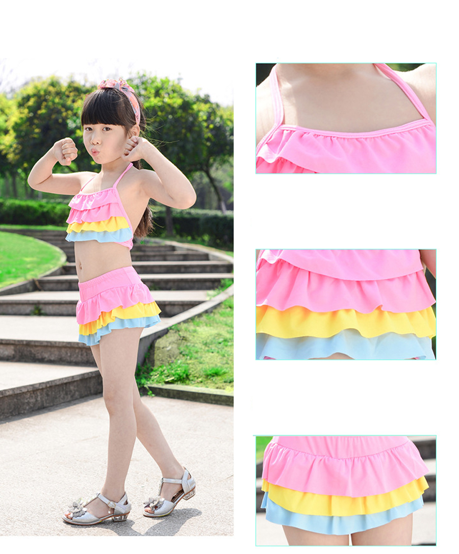 Bộ bơi 2 mảnh kiểu áo yếm, chân váy 3 tầng.