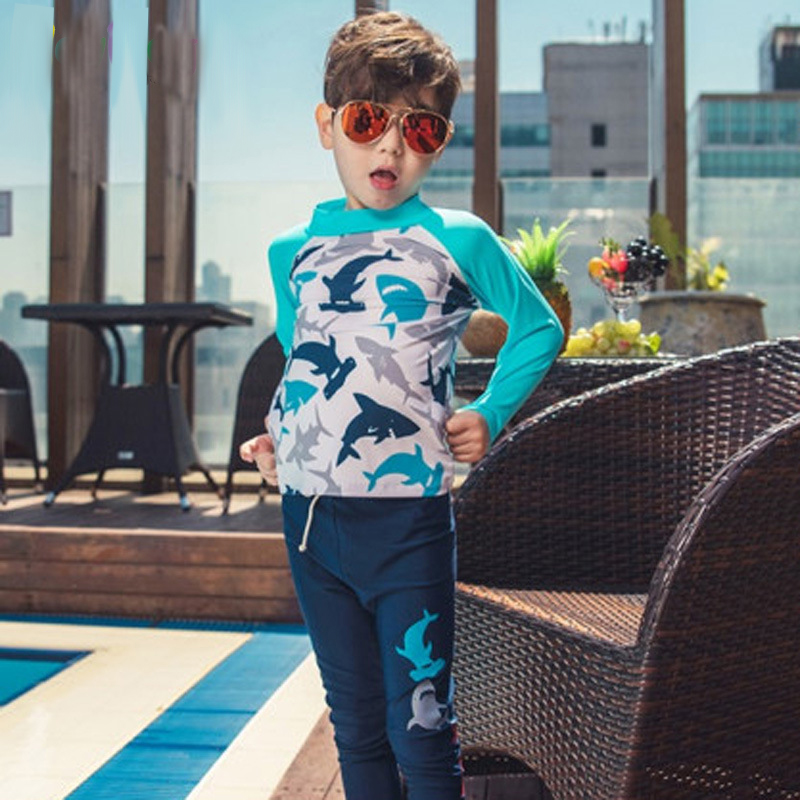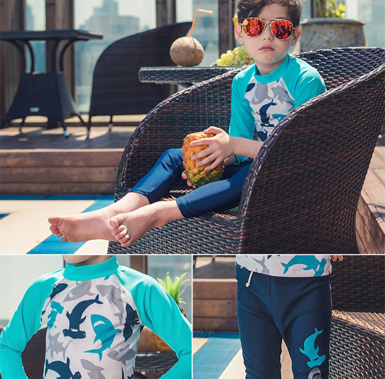 - Mẫu đồ bơi mới cho bé trai, với thiết kế áo dài tay, quần dài che kín cơ thể, giúp bé trai chống nắng khi hoạt động bơi lội ngoài trời.