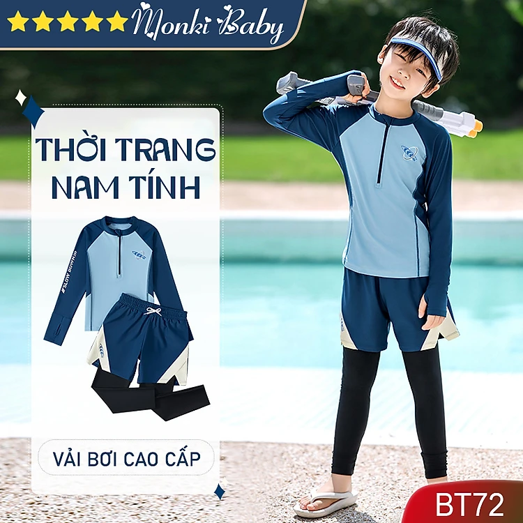 Bộ bơi bé trai chống nắng cao cấp, áo bơi dài tay khóa kéo, quần dài 2 lớp chất thun bơi lạnh, thời trang nam tính, có size lớn | BT72