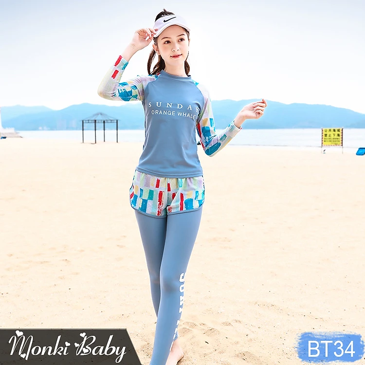 Bộ bơi chống nắng quần dài cho nữ và bé gái lớn, size đại từ 25 đến 58kg, dáng thể thao dài tay quần đùi khoẻ đẹp | BT34