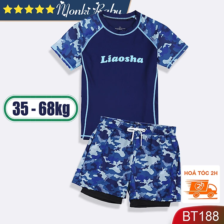 Bộ bơi cỡ lớn cho bé trai mập béo, quần 2 lớp chống lộ rộng rãi có túi để đồ, áo thiết kế riêng thoải mái hơn cho bé big size | BT188