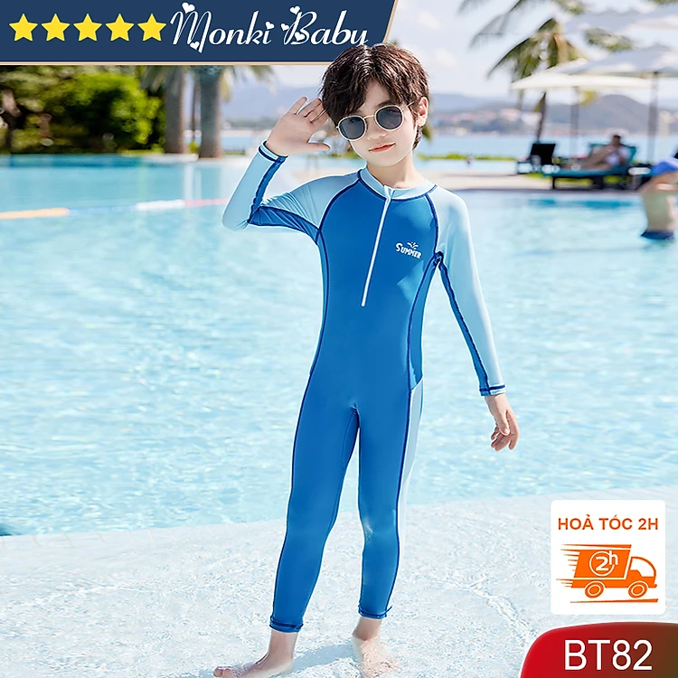 Bộ bơi liền quần dài Bé trai, áo dài tay chống nắng và tia UV, thun bơi lạnh co giãn 4 chiều, mềm mại thoáng mát, size từ 10-55kg | BT82