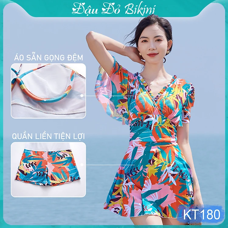 Bộ bơi liền thân nữ dáng váy quyến rũ, thun bơi đẹp co giãn 4 chiều thoáng mát, áo có sẵn gọng đệm, tôn dáng giấu bụng tốt | KT180