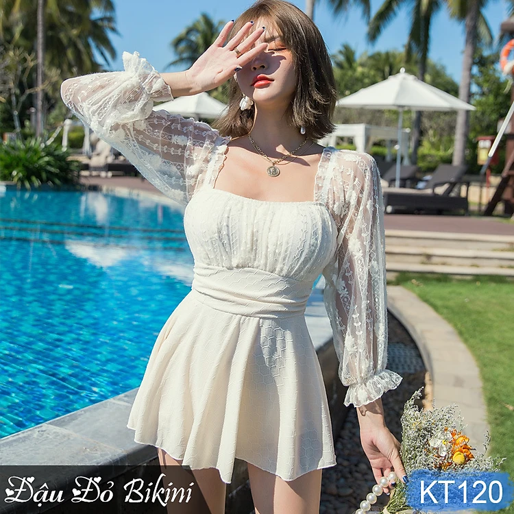 Bộ bơi nữ tay ren gợi cảm, có size đại cho người béo mập, bigsize đến 95kg, phom chuẩn đẹp tôn dáng dấu bụng tốt | KT120
