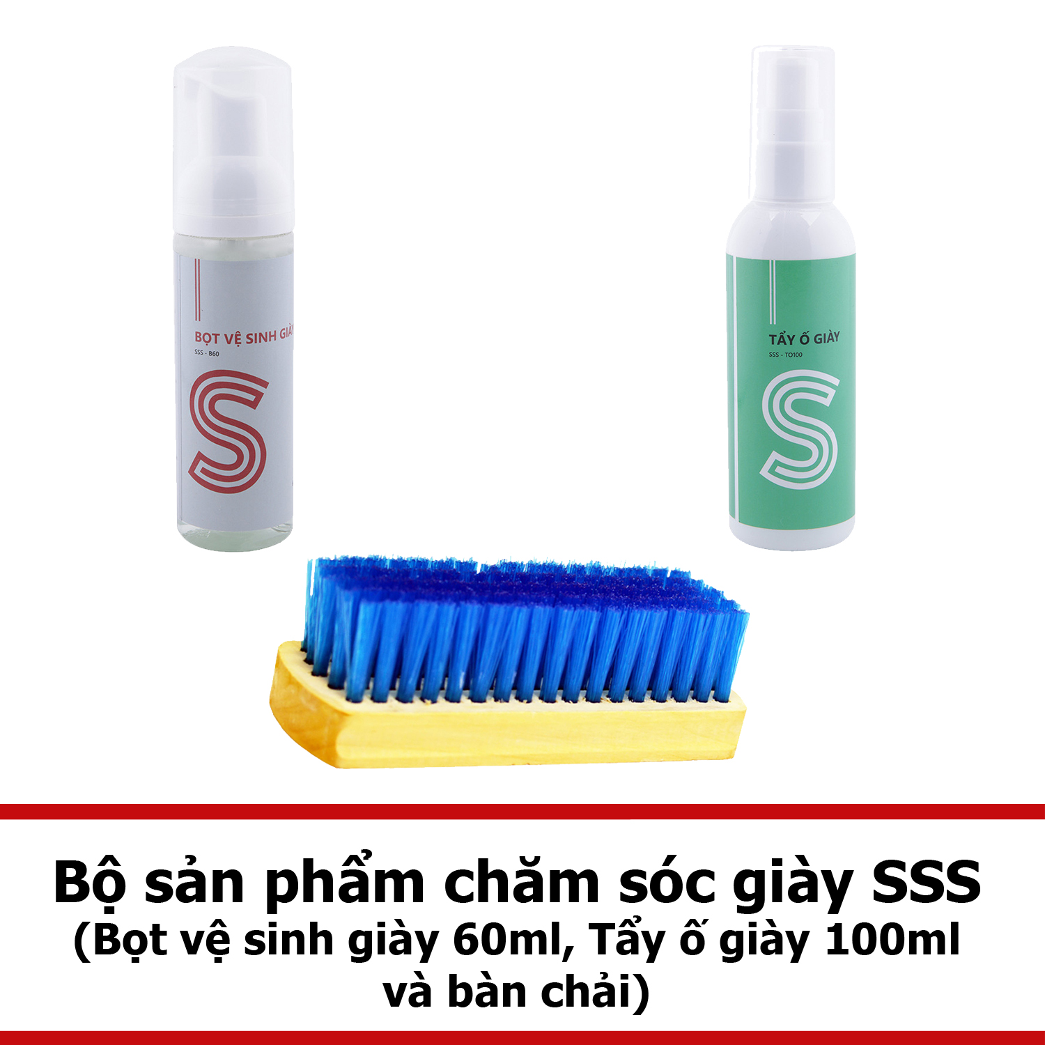 - Bọt vệ sinh giày 60ml SSS B60 Mang lại sự tiện lợi khi vệ sinh các loại giày da nhanh chóng không cần nước. Ngoài ra, sản phẩm có thể vệ sinh giày vải, tẩy ố vàng trên vải của giày.