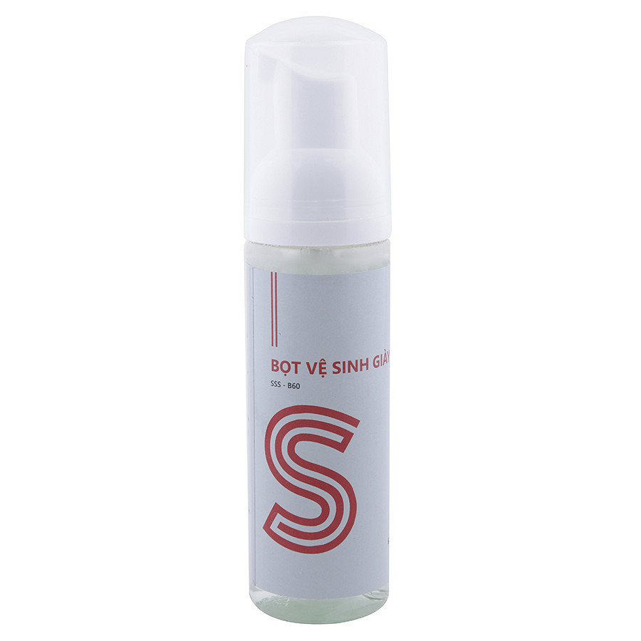 - Bọt vệ sinh giày 60ml SSS B60 Mang lại sự tiện lợi khi vệ sinh các loại giày da nhanh chóng không cần nước. Ngoài ra, sản phẩm có thể vệ sinh giày vải, tẩy ố vàng trên vải của giày.
