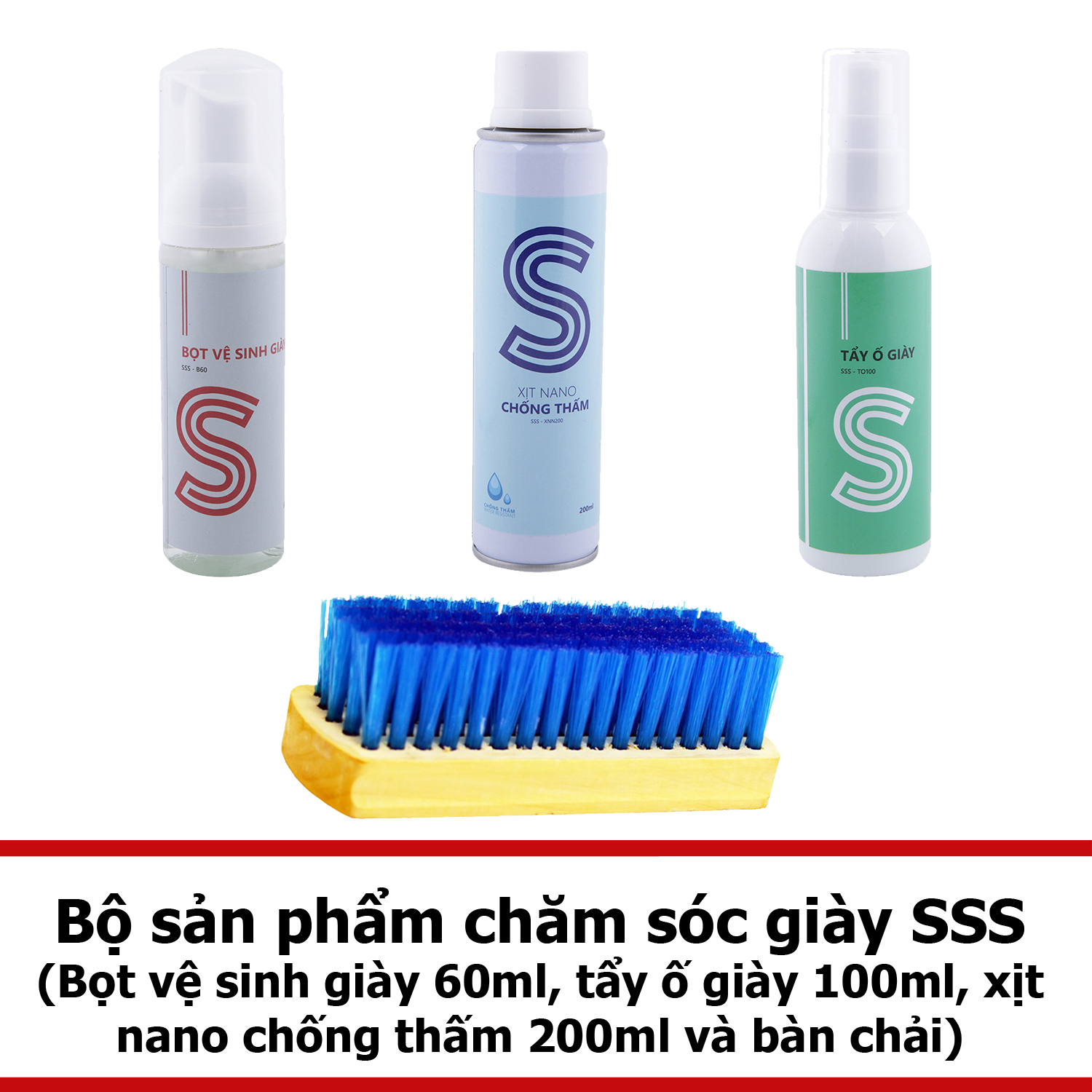 Bộ bọt vệ sinh giày 60ml, tẩy ố giày 100ml, xịt nano chống thấm 200ml và bàn chải COMBOSSS3
