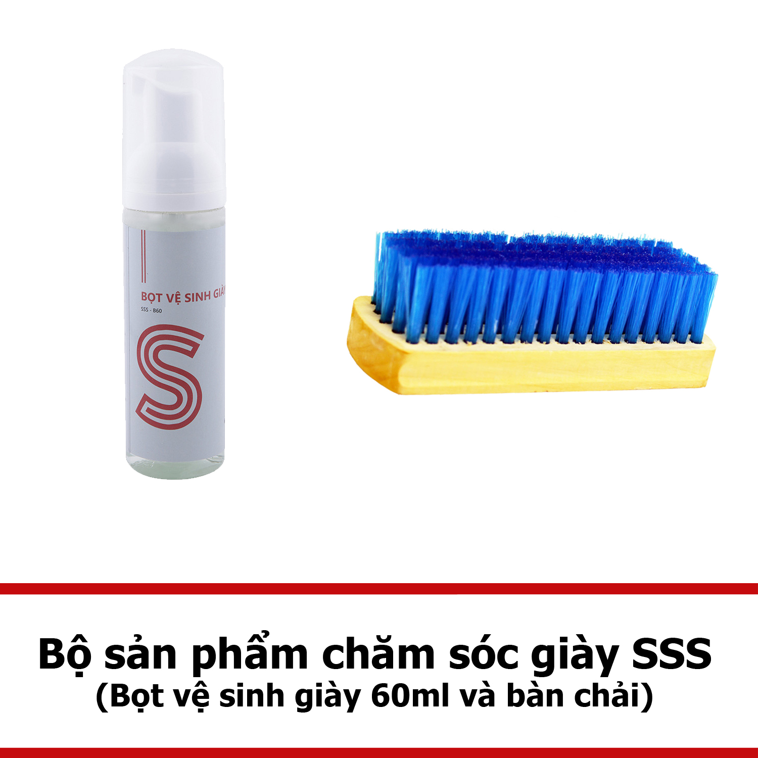 - Bọt vệ sinh giày 60ml SSS B60 Mang lại sự tiện lợi khi vệ sinh các loại giày da nhanh chóng không cần nước. Ngoài ra, sản phẩm có thể vệ sinh giày vải, tẩy ố vàng trên vải của giày.