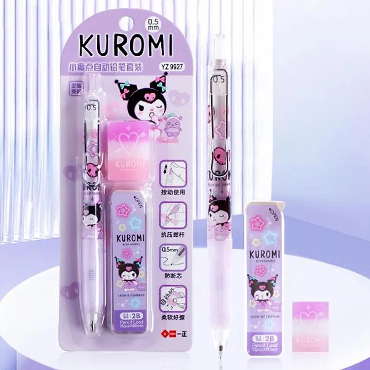 Bộ Bút Chì Bấm Kuromi 0.5 mm Kèm Hộp Ngòi Và Gôm Tẩy - iiGEN IG5792