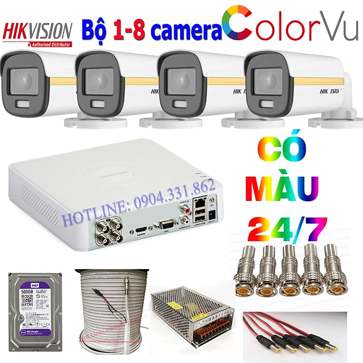 Bộ Camera Hikvision full color có màu ban đêm full phụ kiện lắp đặt hàng chính hãng