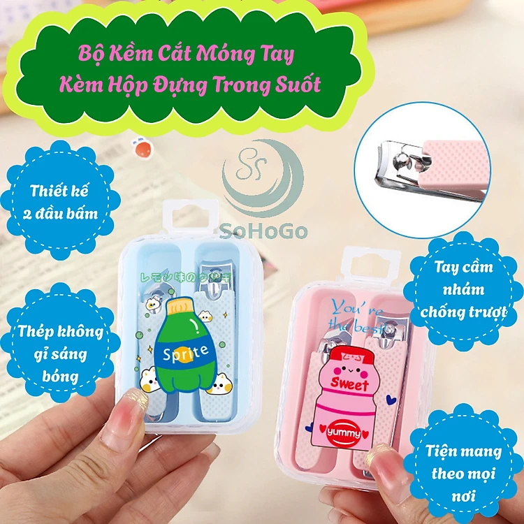 Bộ Cắt Móng Tay Mini Kèm Hộp Đựng Dễ Thương -Set Kềm Cắt Móng Tay Gọn Nhẹ Cute Cartoon -Dụng Cụ Cắt Móng Tay 2 Chiếc Trong Hộp Mini