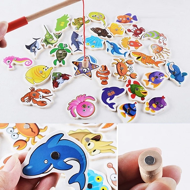 + Gồm 1 bể, 2 cần câu và 32 sinh vật biển bằng gỗ