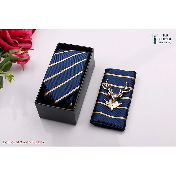 Bộ Cavat Cao cấp 3 món phụ kiện - Kèm hộp túi xách