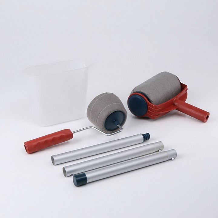 Bộ sản phẩm bao gồm: 1 đầu lăn sơn + 1 chổi nhỏ lăn góc + 3 ống nhôm + 1 ca nhựa đong sơn