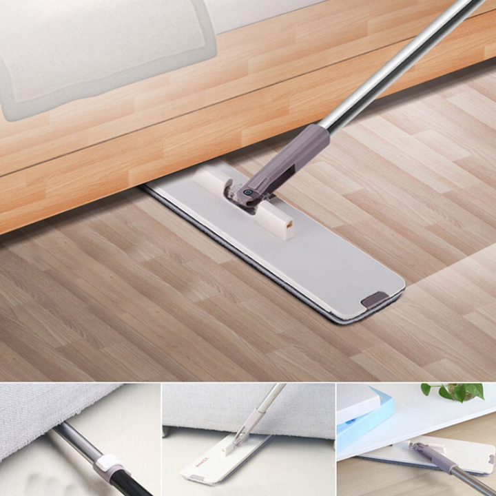 - Bàn lau thiết kế dẹp và có khả năng xoay giúp bạn vệ sinh được mọi ngóc ngách, khe hẹp trong nhà như: gầm tủ; gầm ghế; khe cửa,… lau được trên nền gỗ, gạch men,…